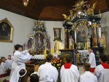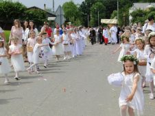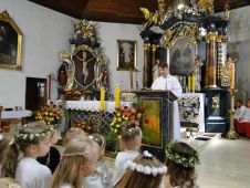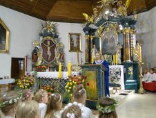 Uroczysta Eucharystia wraz z procesją ulicami grodzickiej parafii z okazji Święta Bożego Ciała miała miejsce o godz. 10:00. Zgromadzeni wierni uczestniczyli w Eucharystii, aby następnie jak ma to miejsce już od kilku wieków wyjść w święto Bożego Ciała na ulice parafii, które w tym dniu zamieniają się we wspaniałą świątynię dla Boga Żywego. Udział w procesji eucharystycznej do czterech ołtarzy zbudowanych na trasie stwarza wspaniałą okazję do rozważania tajemnicy Eucharystii, jest też okazją do zamanifestowania naszej wiary wobec Najświętszego Sakramentu. W tym jedynym dniu w roku ulice parafii i domy zostają pięknie przystrojone dla przychodzącego do nas Boga ukrytego w Hostii Świętej. Zatrzymując się przy kolejnych ołtarzach uczestnicy procesji modlili się i otrzymali błogosławieństwo Najświętszym Sakramentem. Dla godnego uwielbienia Najświętszego Ciała i Krwi Chrystusa w procesji niesiono: sztandary, feretrony, obrazy, dzieci pierwszokomunijne w bieli niosły różaniec, a dziewczynki sypały kwiaty przed idącym Chrystusem - ukrytym w małym kawałku chleba. Procesja zakończyła się odśpiewaniem hymnu pochwalnego Te Deum.