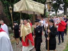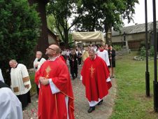 Grodzicka wspólnota uczestnicząc w sprawowanej Eucharystii wraz z kapłanami z dekanatu wielbiła Boga za jego orędownictwo i opiekę nad parafią. Uroczystość zakończyła się wspólną procesją wokół kościoła i śpiewem "Te Deum laudamus".