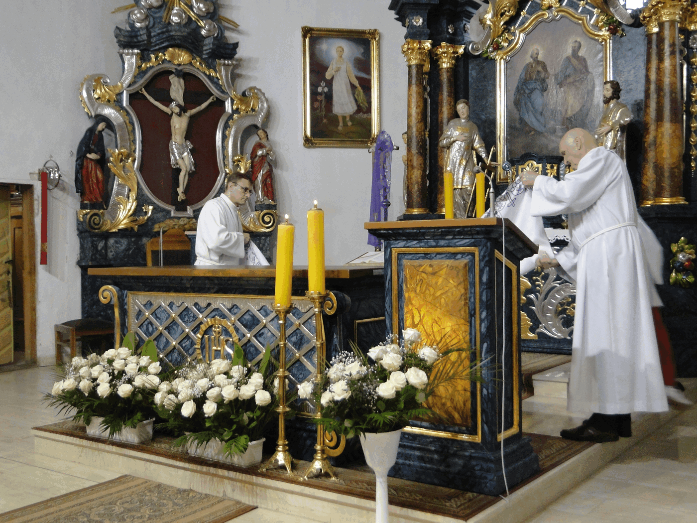 W naszej wspólnocie parafialnej wierni również uczestniczyli w Eucharystii, aby wspólnie wielbić Boga i dziękować za ustanowione Sakramenty. Swoją wdzięczność wyraziliśmy także wobec kapłanów, którzy każdego dnia sprawują Najświętszą Ofiarę Mszy Św., byśmy w sposób pełny i godny mogli w niej uczestniczyć. To podziękowanie parafia wyraziła w modlitwie, życzeniach i kwiatach, jakie zostały złożone na ręce ks. kan. P. Kwiatkowskiego.