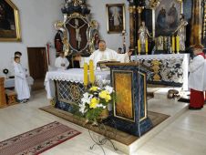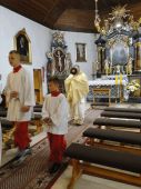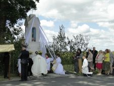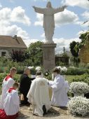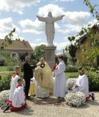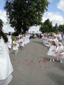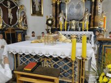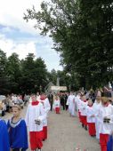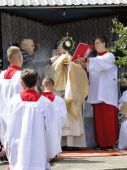 Uroczystość Bożego Ciała w tym roku przypadła na dzień 19 czerwca. W naszej wspólnocie parafialnej w Grodzicznie wierni zgromadzili się na Najświętszej Ofierze Mszy Św. o godz. 10.00, aby następnie udać się w procesji prowadzonej do 4 ołtarzy, przy których czytane są związane tematycznie z Eucharystią fragmenty czterech Ewangelii. W procesji wierni nieśli feretrony, a chłopcy, którzy w tym roku przystąpili do I Komunii Św. różaniec. Przede wszystkim w procesji, gdzie przenosi się monstrancję z Najświętszym Sakramentem bardzo liczna grupa dziewczynek sypała kwiaty, by oddać hołd Chrystusowi, który przychodzi przecież do nas. Również i tym razem nie mogło zabraknąć Parafialno – Gminnej Orkiestry Dętej, która jeszcze bardziej uświetniła całą uroczystość. Musimy zdawać sobie sprawę, że przecież w centrum tego podniosłego świętowania jest On, Chrystus - ukryty w małym kawałku chleba. W tym zbiorowym manifeście wiary w Boga ukrytego w Hostii Świętej uczestniczyło wielu parafian i gości, którym na zakończenie procesji udzielono błogosławieństwa Przenajświętszym Sakramentem oraz wspólnie zaśpiewano hymn.