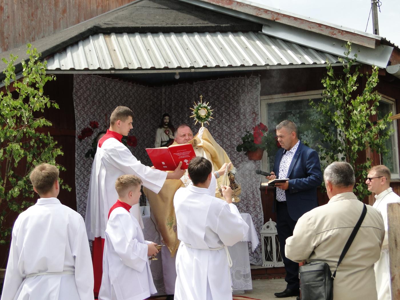 Uroczysta Eucharystia wraz z procesją ulicami grodzickiej parafii z okazji Święta Bożego Ciała miała miejsce o godz. 10:00. Zgromadzeni wierni uczestniczyli w Eucharystii, aby następnie jak ma to miejsce już od kilku wieków wyjść w święto Bożego Ciała na ulice parafii, które w tym dniu zamieniają się we wspaniałą świątynię dla Boga Żywego. Udział w procesji eucharystycznej do czterech ołtarzy zbudowanych na trasie stwarza wspaniałą okazję do rozważania tajemnicy Eucharystii, jest też okazją do zamanifestowania naszej wiary wobec Najświętszego Sakramentu. W tym jedynym dniu w roku ulice parafii i domy zostają pięknie przystrojone dla przychodzącego do nas Boga ukrytego w Hostii Świętej. Zatrzymując się przy kolejnych ołtarzach uczestnicy procesji modlili się i otrzymali błogosławieństwo Najświętszym Sakramentem. Dla godnego uwielbienia Najświętszego Ciała i Krwi Chrystusa w procesji niesiono: sztandary, feretrony, obrazy, dzieci pierwszokomunijne w bieli niosły różaniec, a dziewczynki sypały kwiaty przed idącym Chrystusem - ukrytym w małym kawałku chleba. Procesja zakończyła się odśpiewaniem hymnu pochwalnego Te Deum.