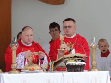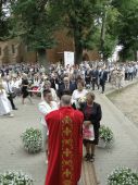 29.06.2025 r. parafia pw. Św. Ap. Piotra i Pawła w Grodzicznie przeżywała swoje święto – Odpust parafialny. Jednak w tym roku to święto miało podwójny wymiar – święto patronalne kościoła i jubileusz 25-lecia Sakramentu Święceń ks. kan. Piotra Kwiatkowskiego – proboszcza tutejszej parafii. Główne uroczystości odbyły się o godz. 11.00 w grocie przykościelnej. Mszy św. dziękczynnej przewodniczył ks. Proboszcz P. Kwiatkowski, który dziękował za dar powołania i swoją kapłańską drogę - drogę służby wspólnocie. Homilię wygłosił ks. dr hab. Tomasz Tułodziecki - prof. UMK w Toruniu, który mówił o posłudze kapłańskiej, głoszeniu Słowa Bożego i trudzie jakiego podejmuje się kapłan w budowaniu wspólnoty, do której zostaje posłany. Ks. P. Kwiatkowski Święcenia Kapłańskie przyjął w Roku Jubileuszowym 2000 z rąk ks. bp. Andrzeja Suskiego w toruńskiej Katedrze św. Janów. Jako wikariusz został posłany najpierw do parafii św. Antoniego w Toruniu, a później św. Mikołaja Biskupa w Kowalewie Pomorskim. Następnie został mianowany proboszczem parafii św. Marii Magdaleny w Ostrowitem k. Kowalewa, a z dniem 2 grudnia 2018 r. proboszczem parafii pw. Świętych Apostołów Piotra i Pawła w Grodzicznie. To tu w Grodzicznie Jubilat obecnie realizuje swoją kapłańską posługę i obchodzi 25 lat Kapłaństwa w Roku Świętym 2025.