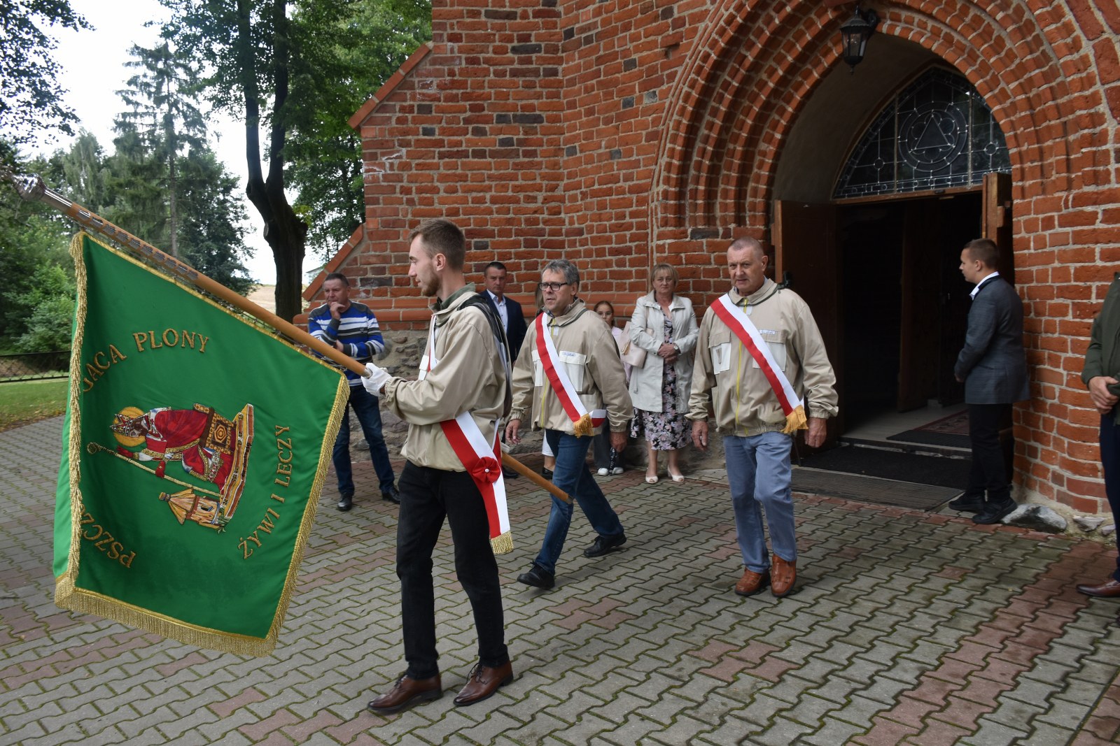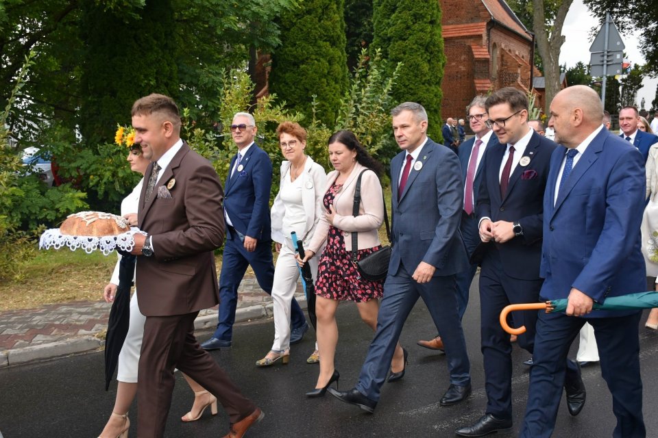 Po zakończonej Eucharystii i błogosławieństwie miał miejsce przemarsz korowodu dożynkowego na parking przy Urzędzie Gminy w Grodzicznie, gdzie rozpoczęła się oficjalna część dożynek.