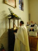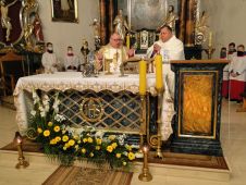 W homilii ks. Dziekan przybliżył wiernym kult relikwii. Szczególny rozwój kultu świętych dokonał się w wiekach średnich. Sprzyjały temu bardzo często trudne warunki życia, epidemie, najazdy barbarzyńskich ludów. Ludność wówczas szukała obrońców, chciała w ten sposób zapewnić sobie ochronę od różnych nieszczęść i chorób. Z tego też powodu każda miejscowość zabiegała o posiadanie jakiejś relikwii. Spowodowało to ich dzielenie i poszukiwanie nowych. Jednocześnie wzrosło znaczenie miejsc, które posiadały ciała męczenników.
