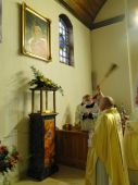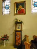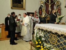 Na zakończenie Mszy Św. ks. Proboszcz podziękował ks. Dziekanowi za sprawowaną Eucharystię i wzięcie udziału w Uroczystości. Również podziękowania i kwiaty zostały przekazane przez delegację parafian. Uroczystość zakończyła się poświęceniem obrazu św. Jana Pawła II i modlitwą przed relikwiarzem.